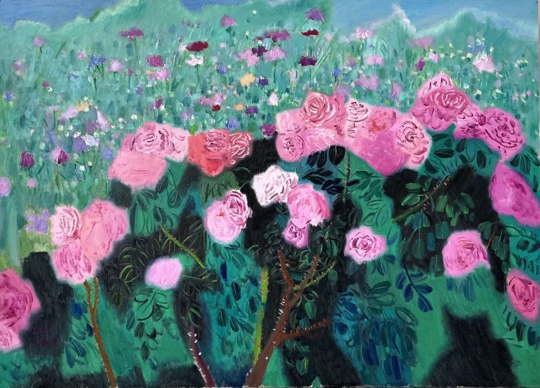 “满架蔷薇一院春”,一院春色,尽在蔷薇架上。这幅画,让人想起陶渊明的桃花源,那是一个充满诗情画意的地方,也是人们心中理想的栖息地。王克举先生用他的画笔,为我们创造了一个这样的世界,一个充满美好和希望的世界。