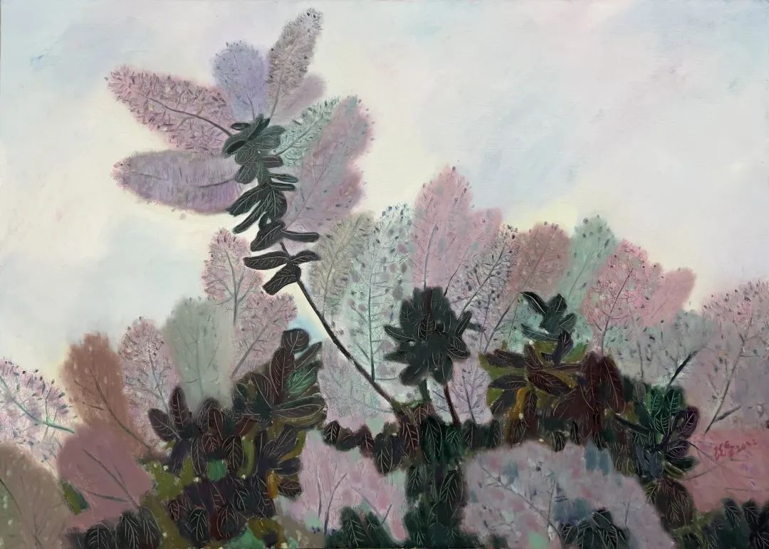 从大尺幅到小品,“春藏锦绣”和“暗归草堂静”两幅小品,延续了艺术家对自然细致入微的观察。方寸之间,亦是乾坤。