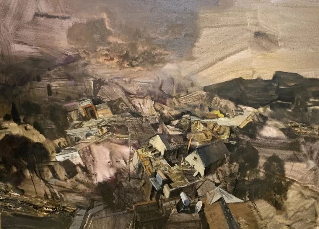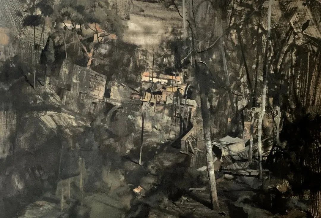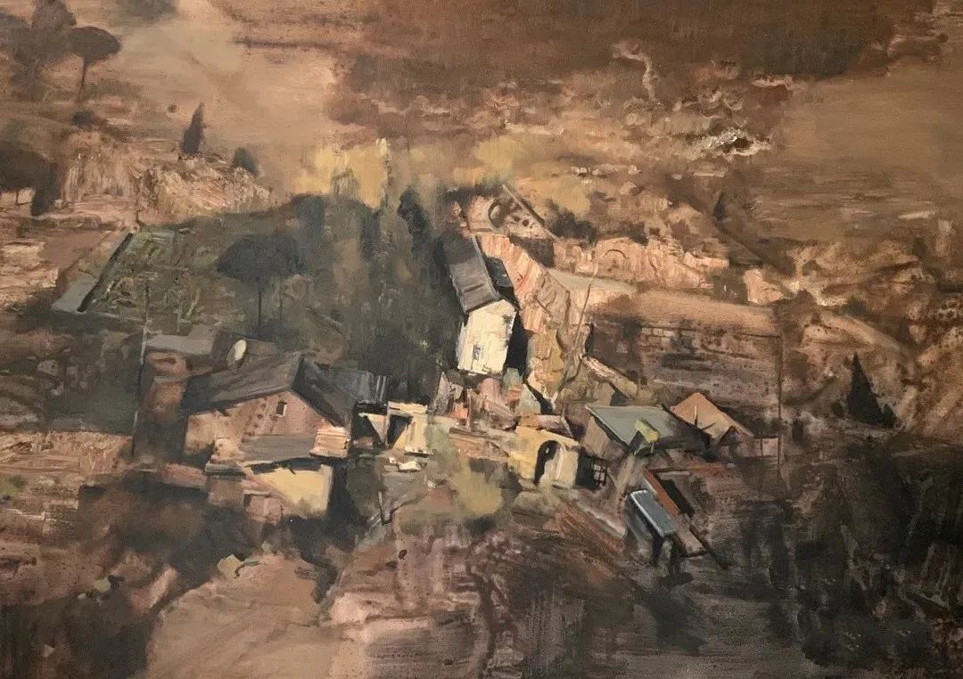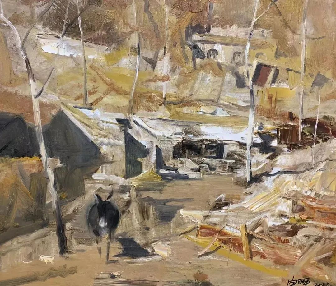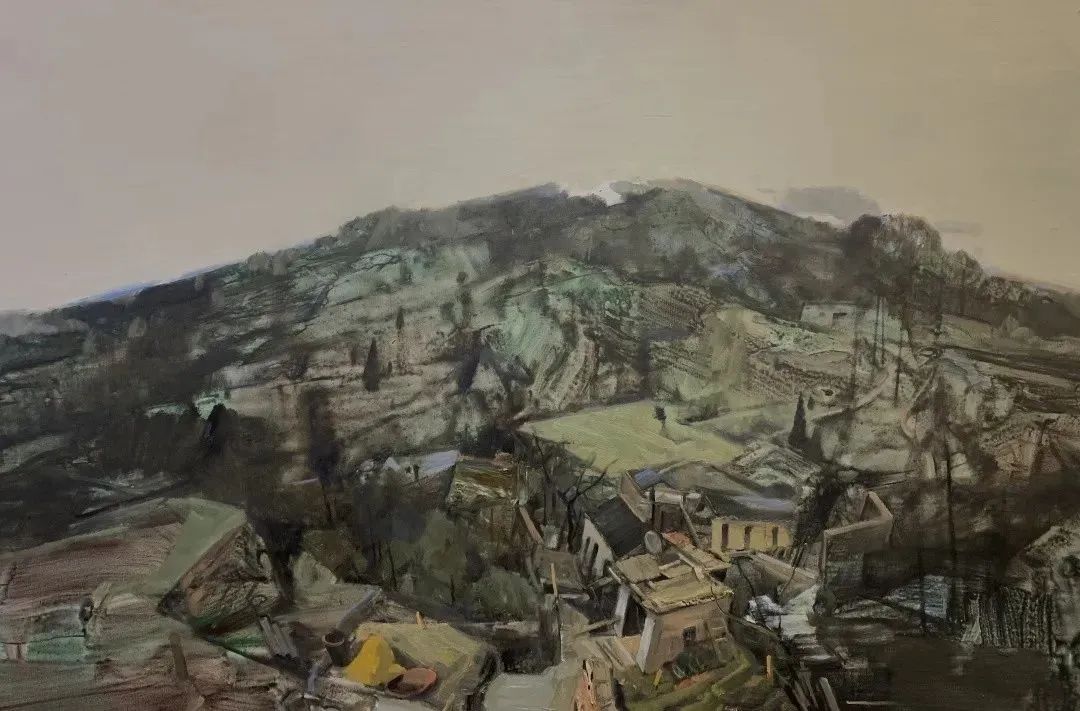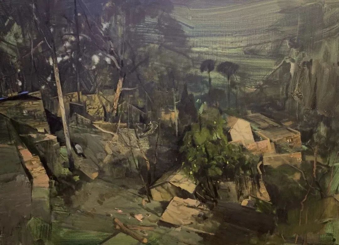 他的“古村”系列,仿佛一曲古老的歌谣,低吟浅唱着时光的故事。那一幅幅120x170cm的画布,如同一个个窗口,通往宁静的田园世界。古村之一,或许是晨曦初露,薄雾轻笼,古老的屋舍在朦胧中透出几分神秘;古村之二,可能是夕阳西下,金色的余晖洒满村落,将一切染上温暖的色调;古村之三,也许是雨后初晴,空气清新,湿润的石板路反射着天光,一切都显得格外澄澈……