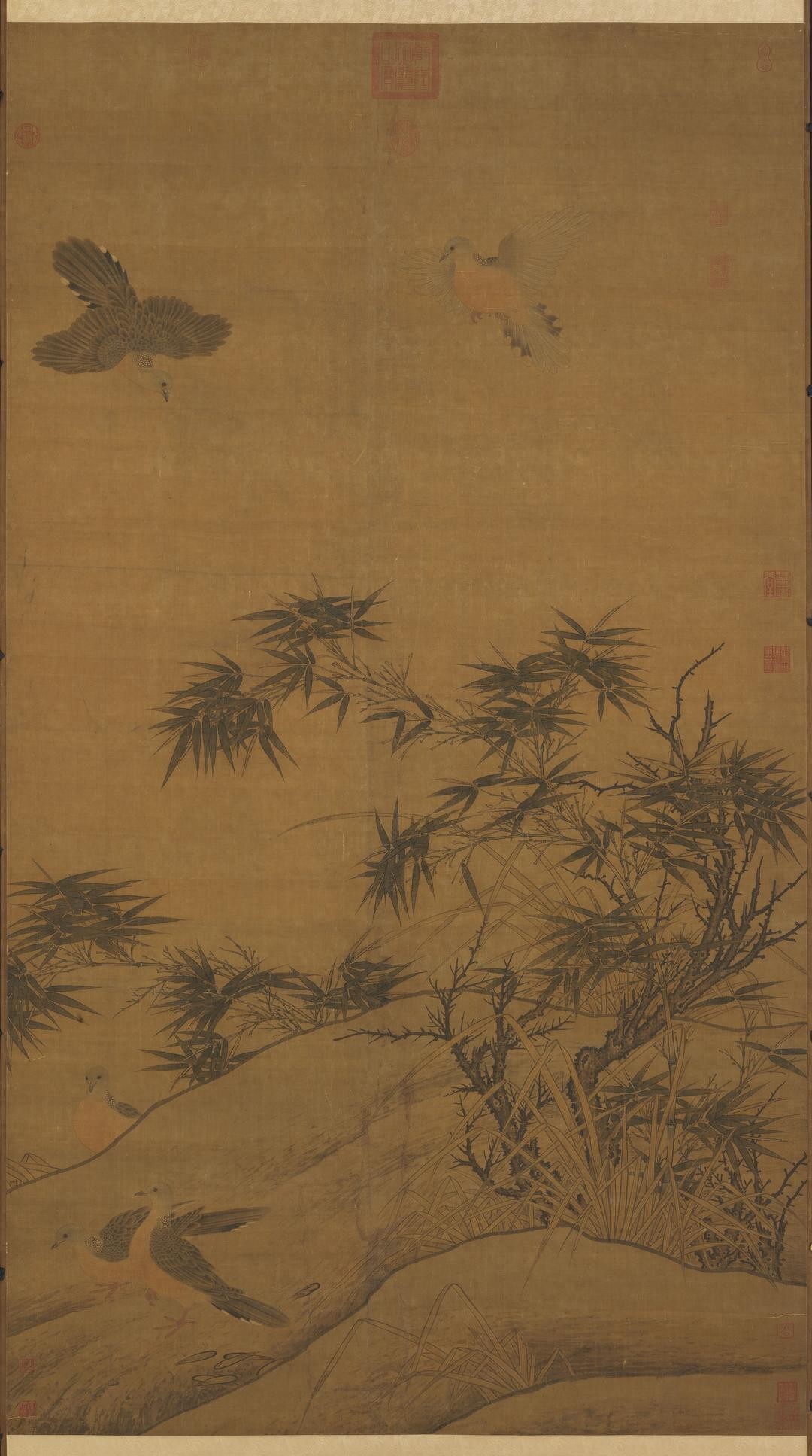宋人《竹石鸠子图》画卷不大,166×93.9 cm,却足以容纳一方天地,一方充满生机的秋日天地。