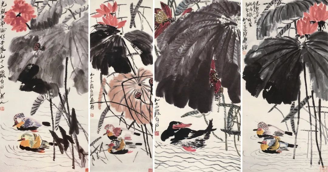 这些作品,不仅是齐白石艺术生涯的巅峰之作,也是他对生命和美的讴歌。他用画笔记录了自然之美,也表达了对生活的热爱。在齐白石的笔下,荷花不再仅仅是植物,而是象征着生命的蓬勃与生机;水鸟也不仅仅是动物,而是象征着自由与快乐。他用最朴素的形象,表达了最深刻的情感,触动了无数人的心灵。