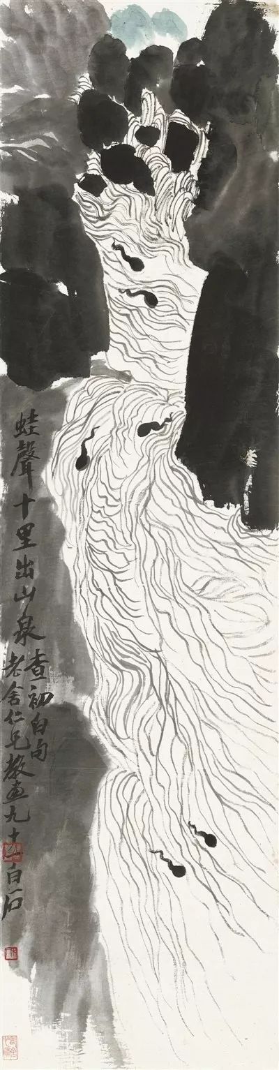 凝视着齐白石的画作,仿佛置身于一个充满生机和诗意的世界。他的画,不仅仅是简单的描摹自然,更是对生命的赞歌,对自然的热爱。那红花墨叶的独特风格,那充满童趣的画面,那蕴含着深刻哲理的意境,都深深地吸引着我们,让我们感受到艺术的魅力和生命的真谛。他笔下的《蛙声十里出山泉》,那一片浓墨渲染的山林,几笔勾勒的蝌蚪,便将山间清幽的意境表现得淋漓尽致;《红衣牛背雨丝丝》,那鲜艳的红衣,那温顺的老牛,那细密的雨丝,构成了一幅充满诗意的田园牧歌图。
