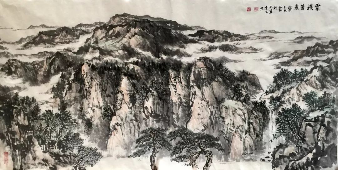 李立的山水画,既有北方山水的雄浑奇伟,又有南方山水的滋润灵动。他的笔墨,继承了传统山水的闲静超逸,在浓淡干湿之间,形成了独特的个人语言。观其画作,重峦叠嶂,浑厚苍润,烟云缭绕,山峦丘壑变化丰富,充溢着氤氲的意境。那山脉的走势,奇险而气势磅礴,繁密的皴笔层层累积,在丘壑、笔墨上都展现出质实、坚硬之感。他运笔沉着有力,干脆利落,颇有金石篆刻的胆色和力度。